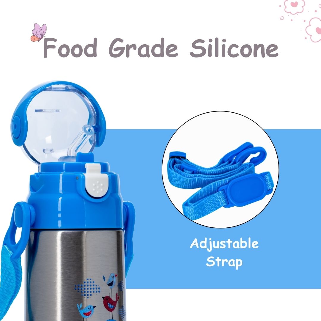 Adore® LUCIDO!Double Wall Stainless Steel Printed Sipper are manufactured from 304 (18/8) SSFood Grade Material with a Food Grade Silicon Straw. This Bottle ensures theliquid inside is hot and cold for long hours. This sipper has an adjustablestrap and ensures the kids have it handy.
