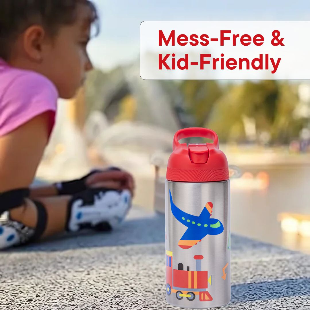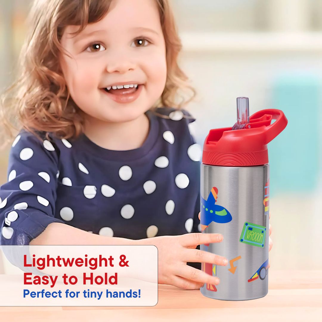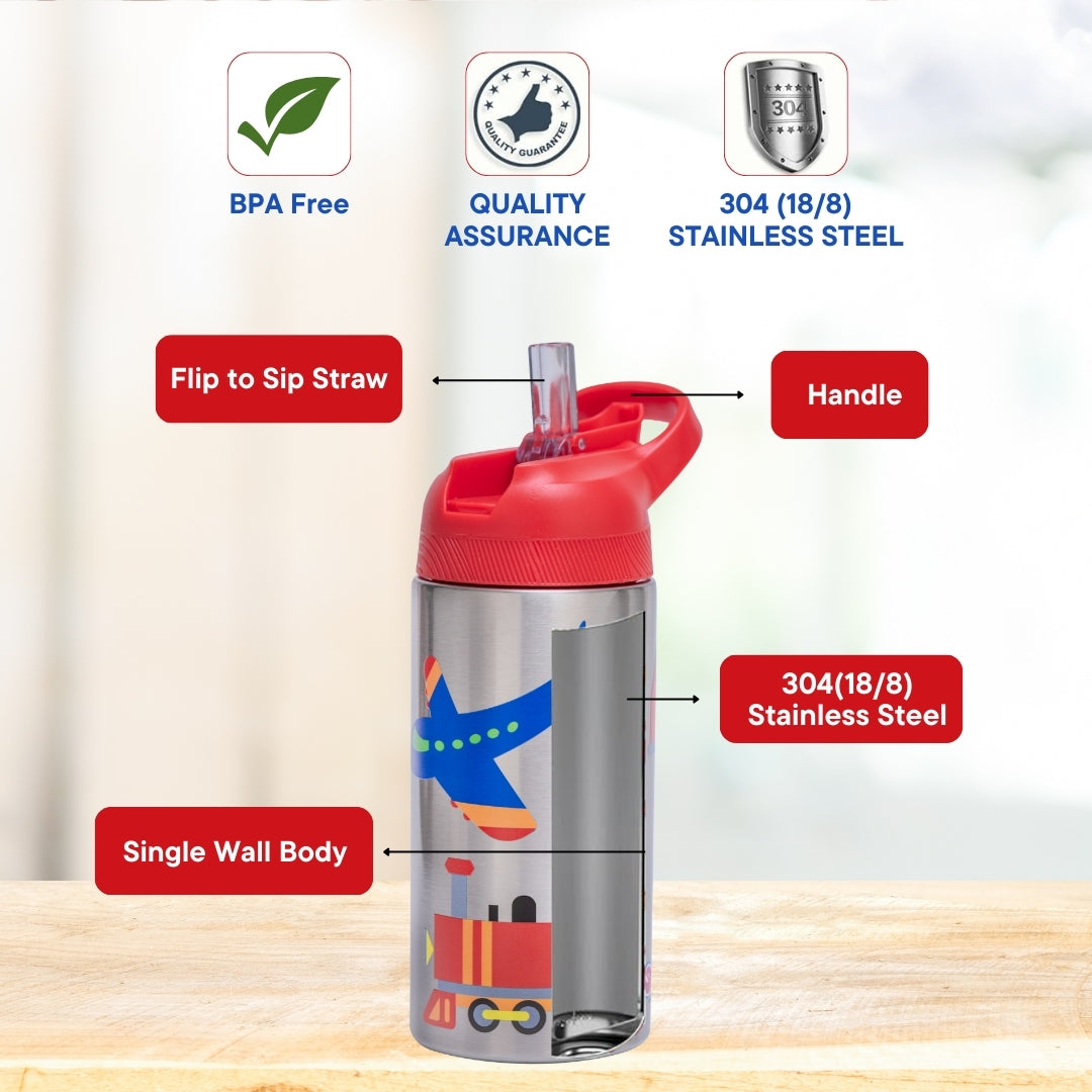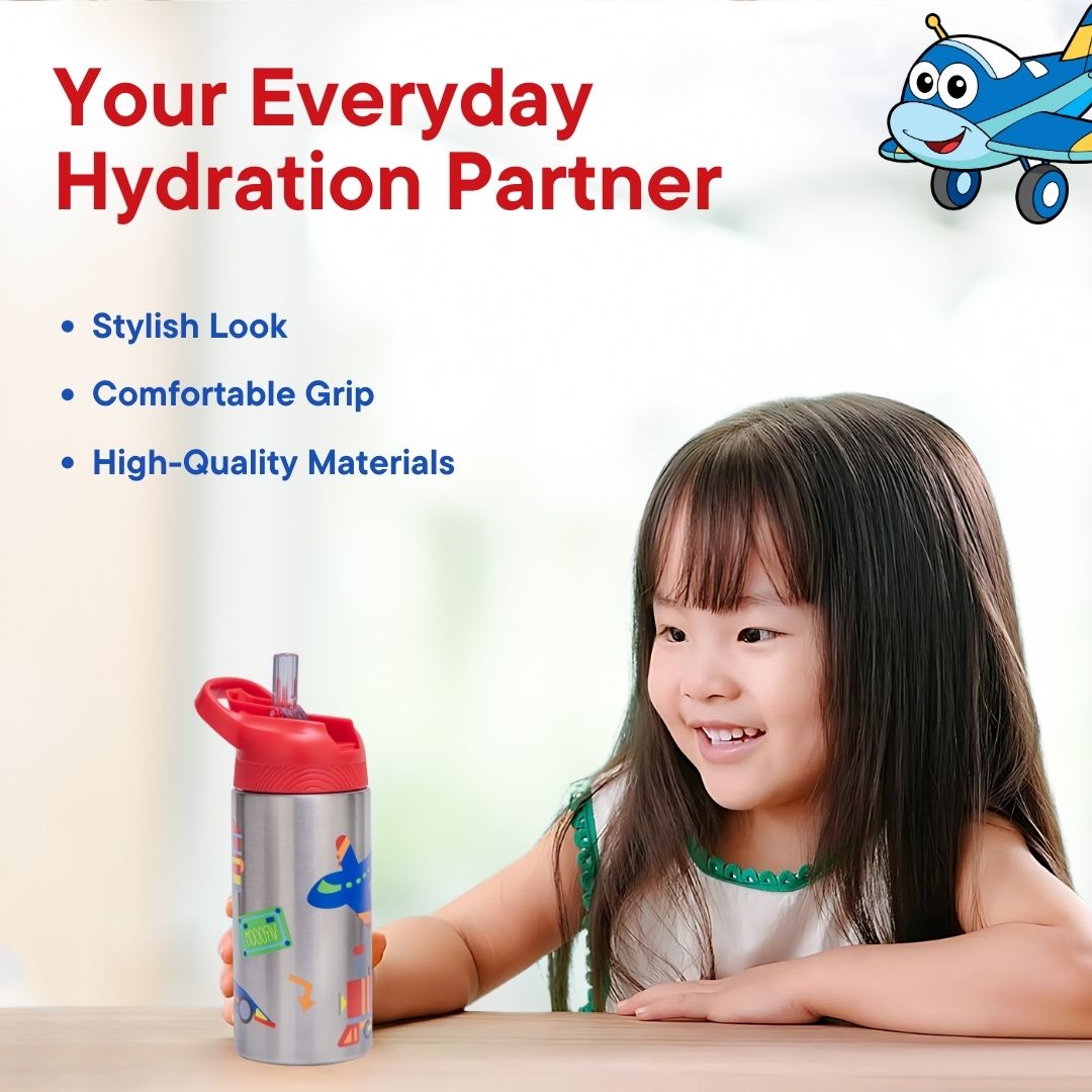 Adore® Lumina! Premium Stainless Steel Straw Sippers are manufactured from 304 (18/8) SS Food Grade Material with a Food Grade Silicone straw. These bottles are manufactured using world-class, state-of-the-art machinery. The Ergonomic bottle design with a sleek handle makes it easy for the champs to handle easily, making it portable and easy to sip with a spill-proof design.