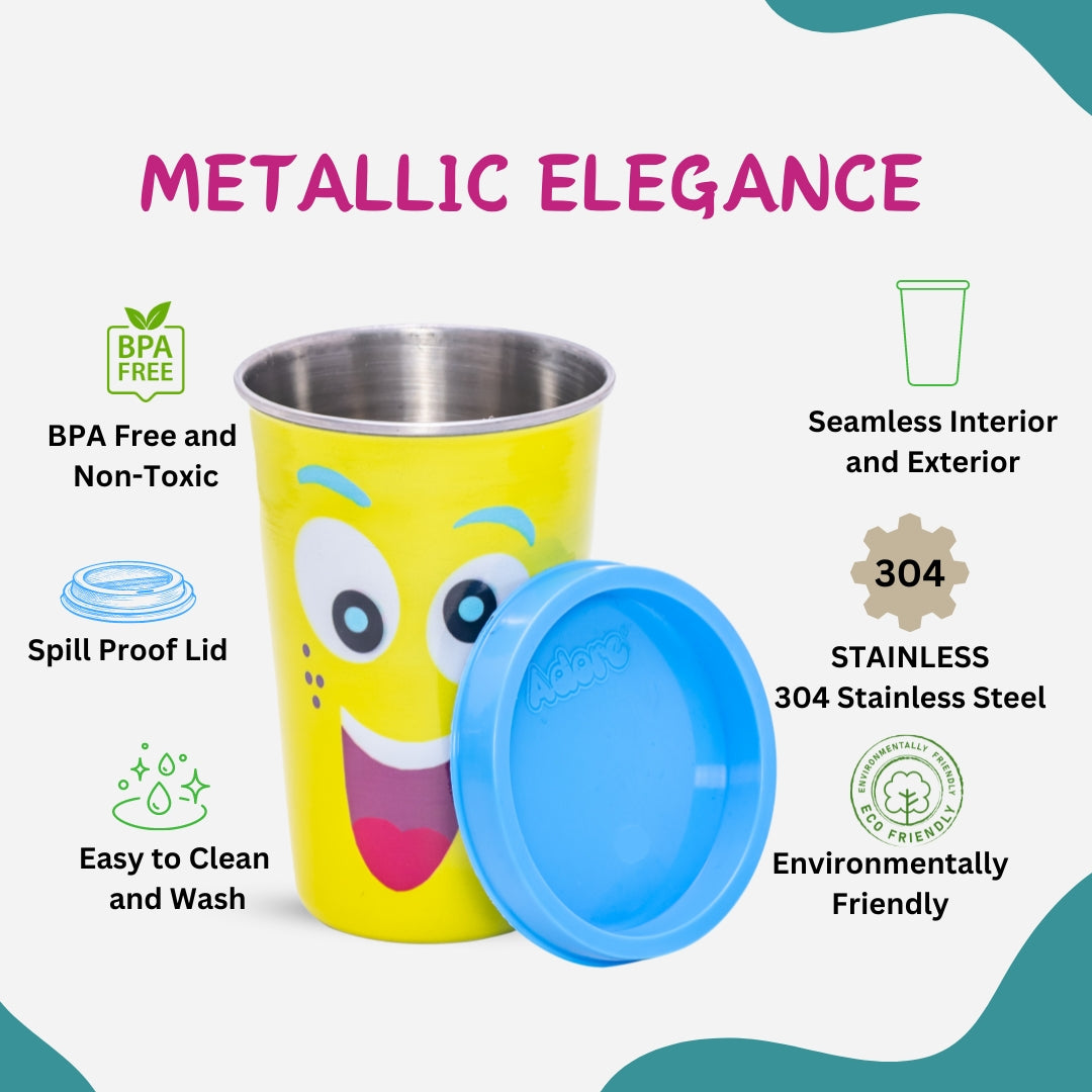 Adore presents Numero Uno! Stainless Steel printed tumbler with curiosity arousing prints for your littleones.This tumbler is a perfect for drinking liquids like water, milk,juice & other beverages. The wide mouth design allows you toeasily clean them efficiently to maintain hygiene. Made from highlydurable stainless steel material.