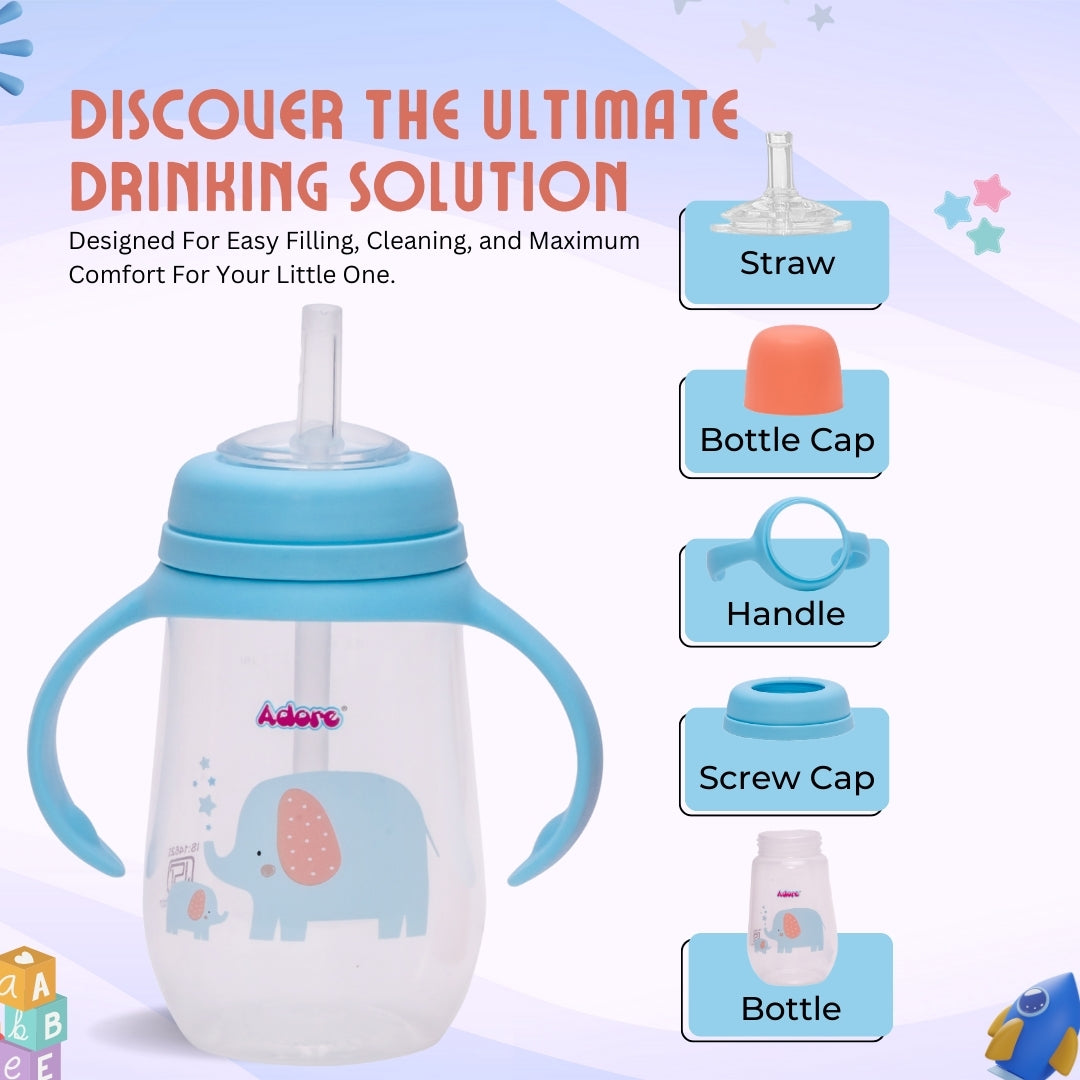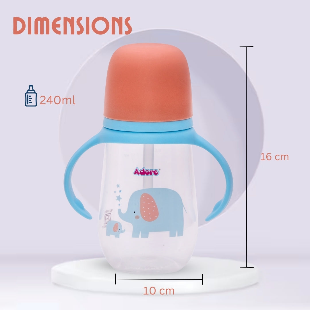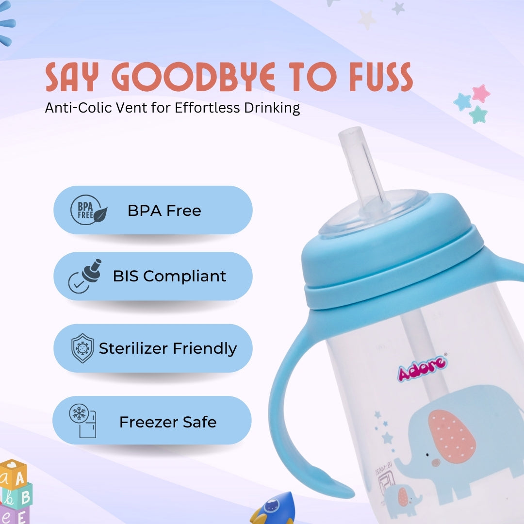 Adore Scotland Wide neck Soft Straw Sipper with Twin Handle-250ml- New Blue