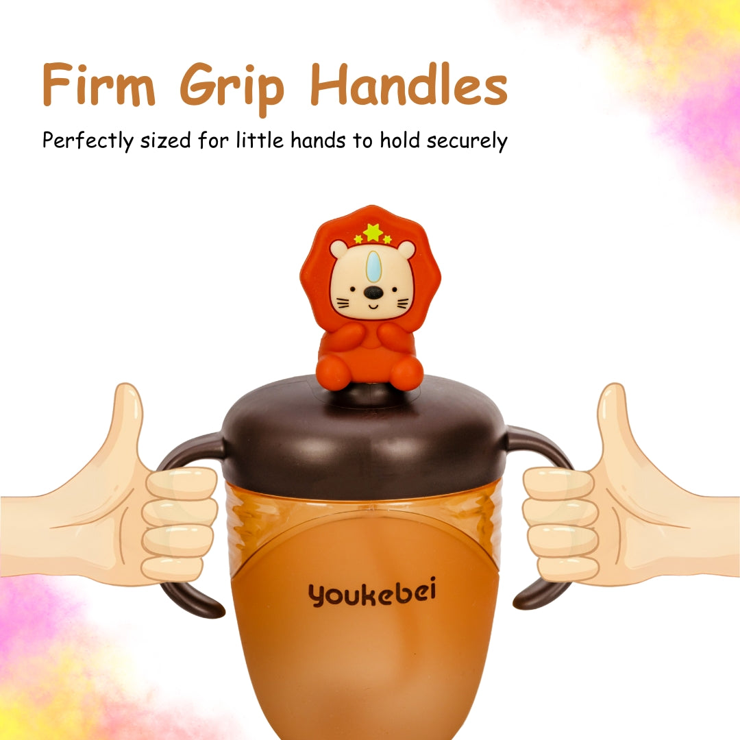 Adore Simbha- The Silicon Straw Sipper with Gravity Ball & Twin Handle 210ml Brown