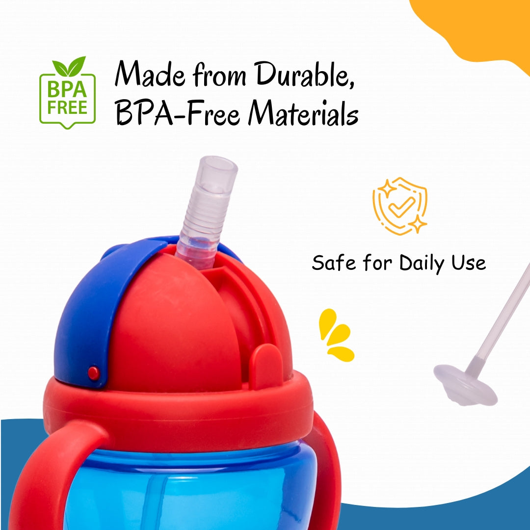 Adore Sippero Straw Sipper with Gravity Ball is processed from food-grade material using state-of-the-art machinery. This sipper has been designed ergonomically with detachable Twin Handle. This features Food grade Straw that is safe for babies and Sterilisable. The Ergonomic Design makes it easy for the babies to transform from spout sipper to Straw Sipper. This is Spill Proof, Lightweight, Easy to Handle, and Dishwasher Safe.