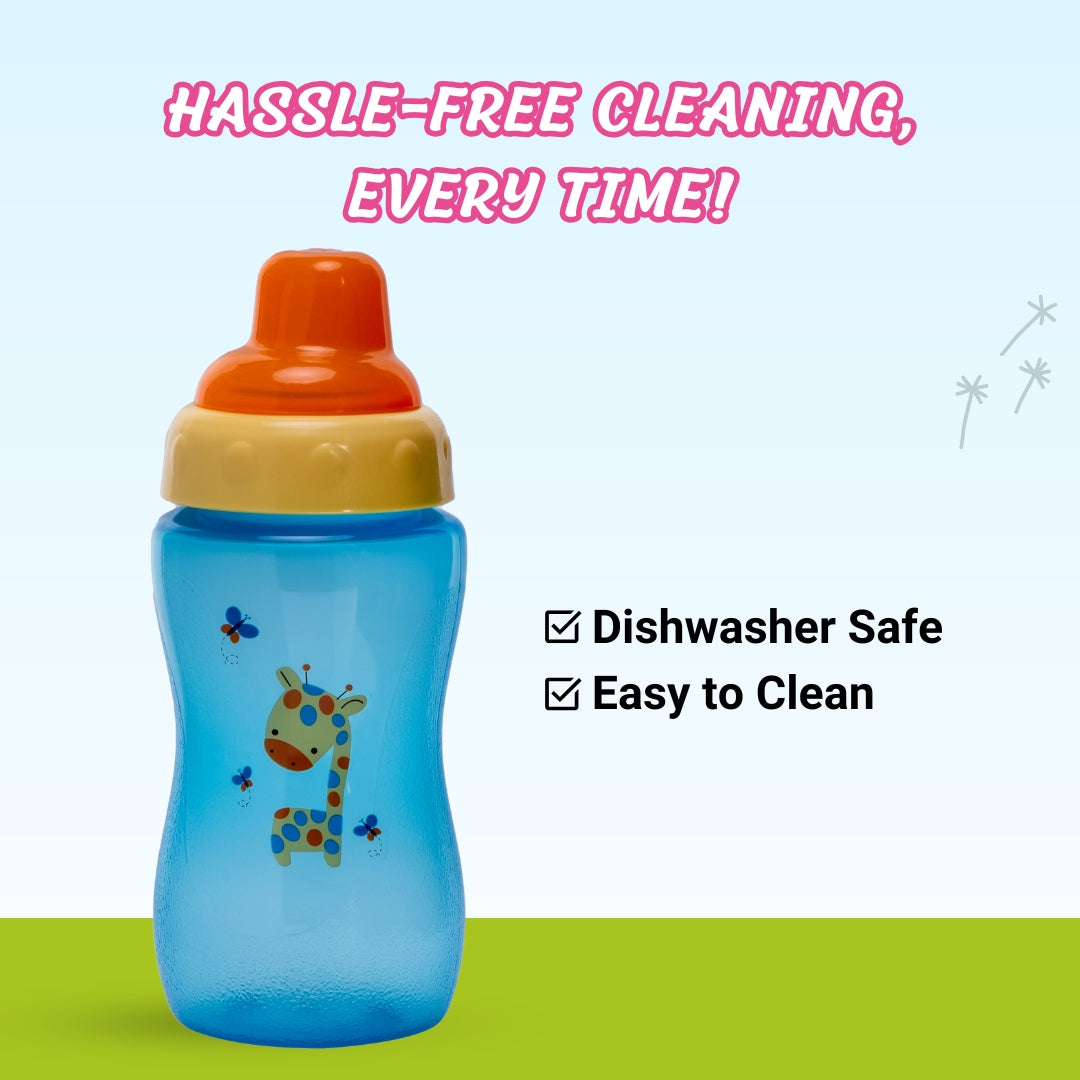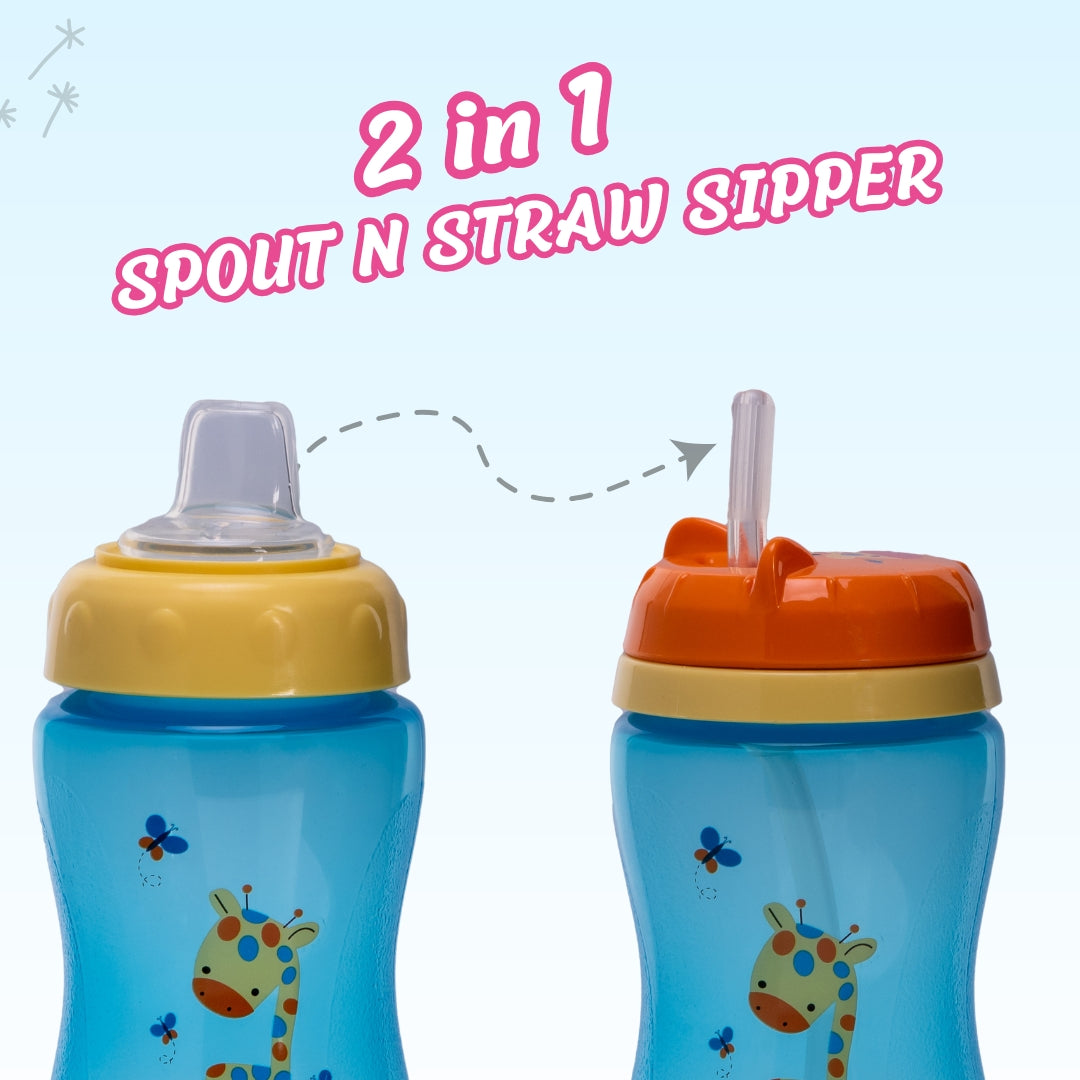 Adore Spartan 2 in 1 Spout n Straw Sipper with Hood is processed from food-grade material using state-of-the-art machinery. This sipper has been designed ergonomically with a twisting head and dust-free hood for Hygiene. This features a food-grade silicon spout and straw that is safe for babies and is Stabilizable. The Body Design makes it easy for the babies to handle and transform from feeding bottles to spout sippers and straw sippers. This is spill-proof, Lightweight, Easy to Handle, and Dishwasher Safe.
