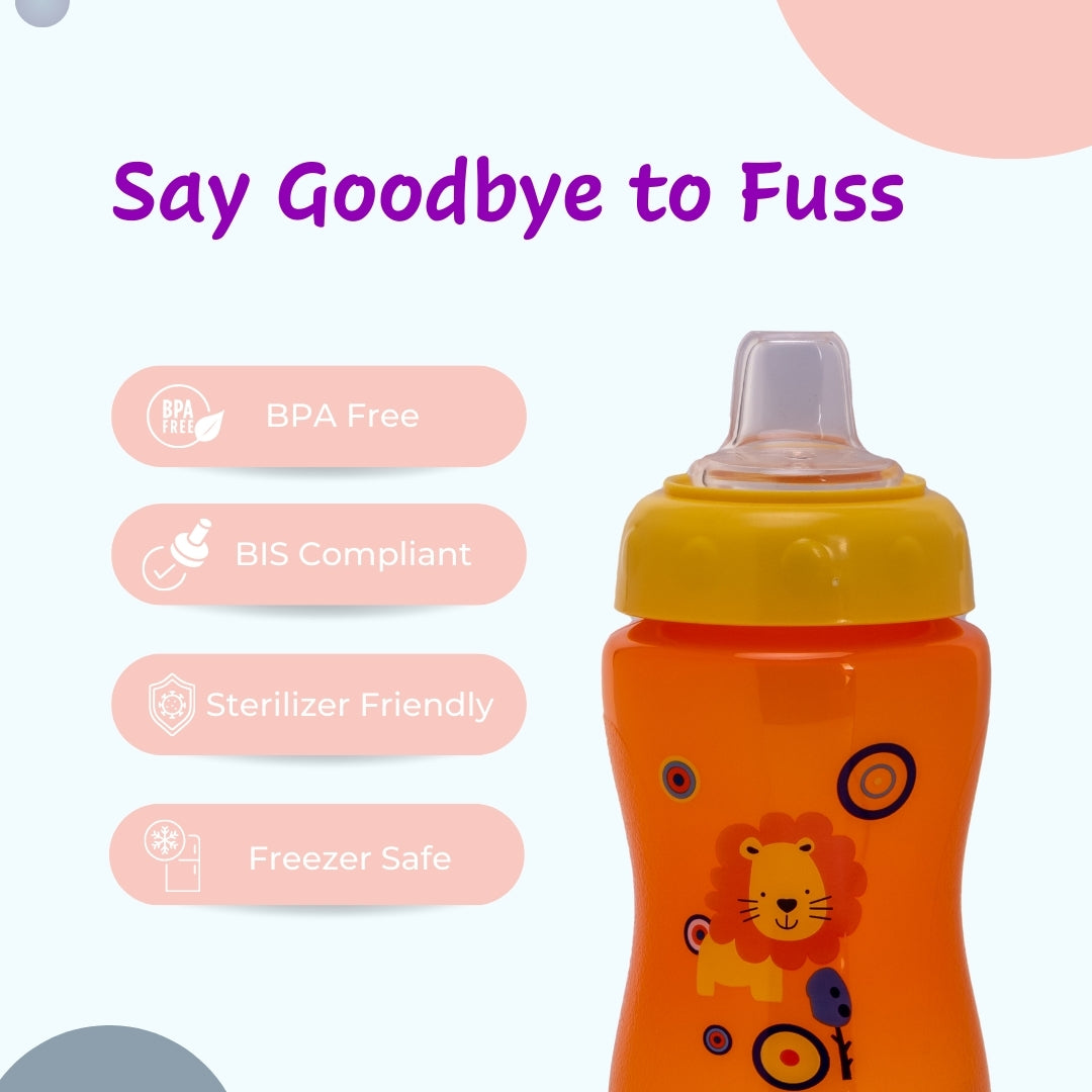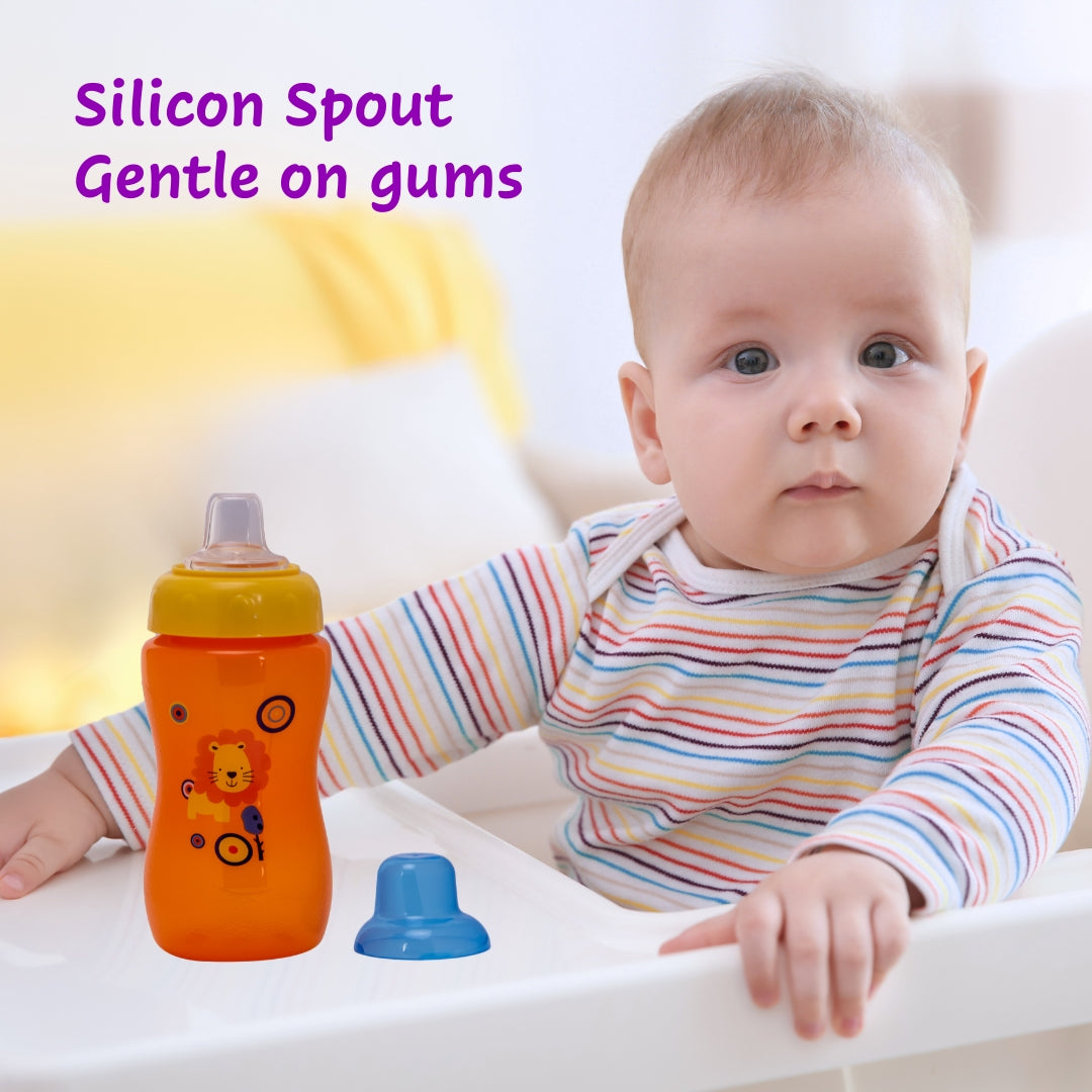 Adore Spouty! The Silicon Soft Spout Sipper with Hood is processed from food-grade material using state-of-the-art machinery. This sipper has been designed ergonomically with a dust-free cap for Hygiene. This features a food-grade silicon spout that is safe for babies and is Sterilisable. The Body Design makes it easy for the babies to handle and transform from feeding bottles to spout sippers. This is spill-proof, Lightweight, Easy to Handle, and Dishwasher Safe.