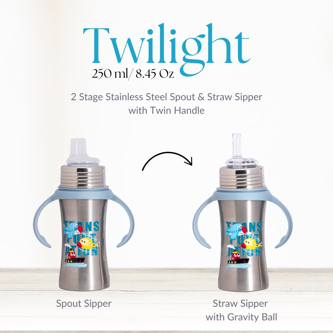 Adore Twilight 2in 1 Stainless Steel Sipper with Twin Handle 250ml - Blue Transport
