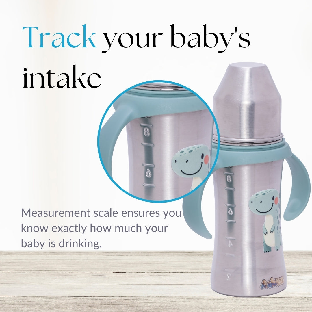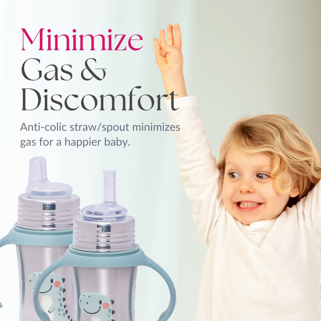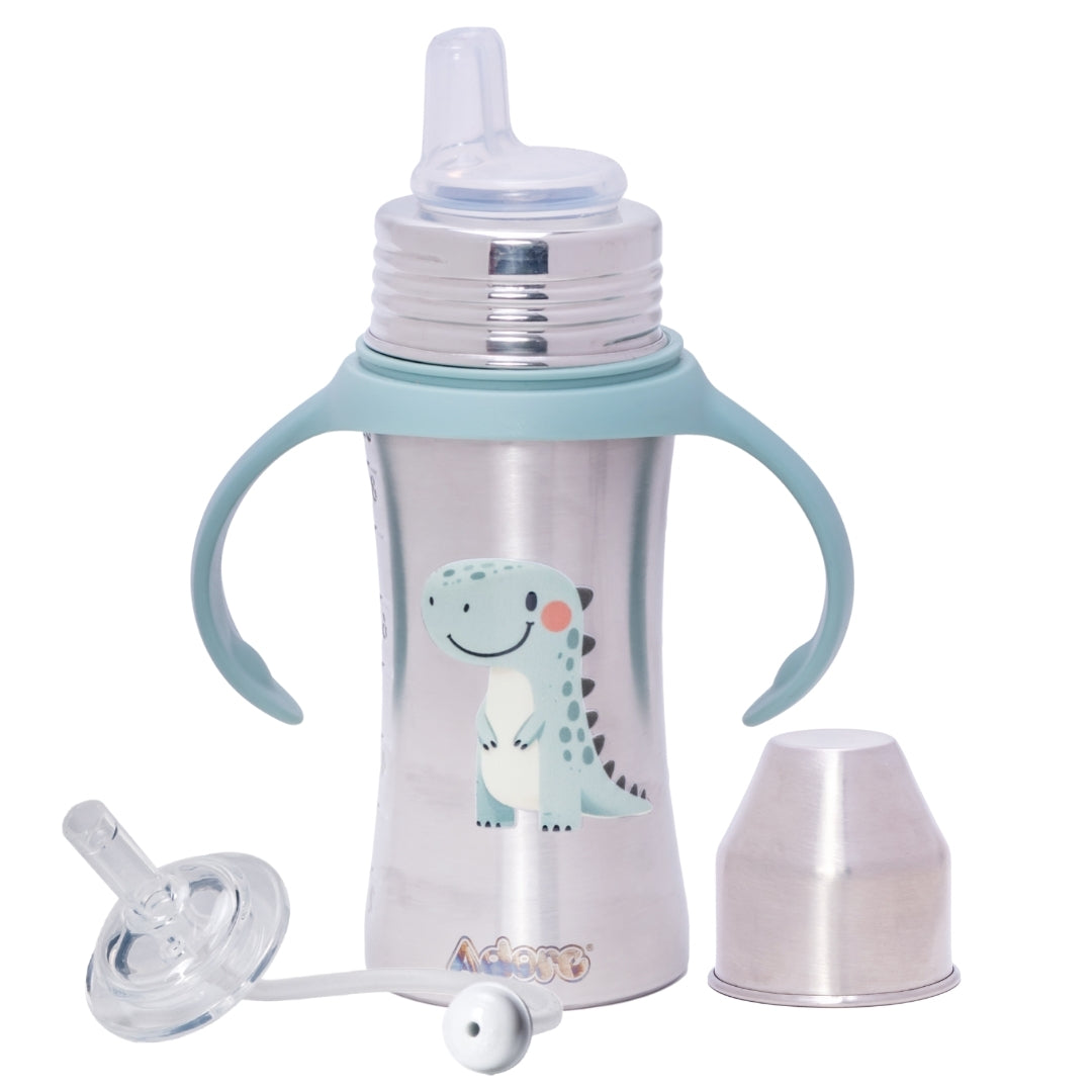 Adore Twilight 2in 1 Stainless Steel Sipper with Twin Handle 250ml - Green Dino