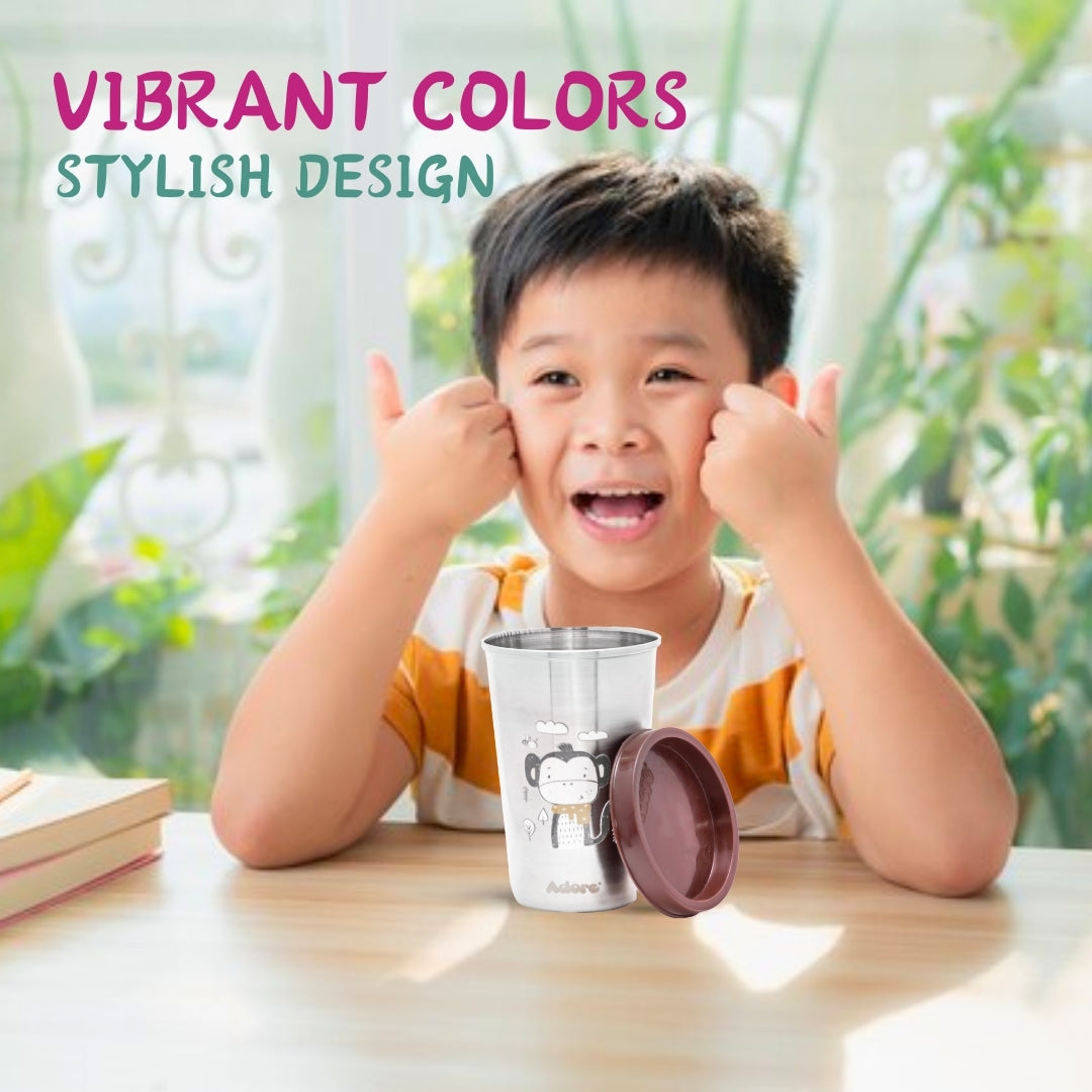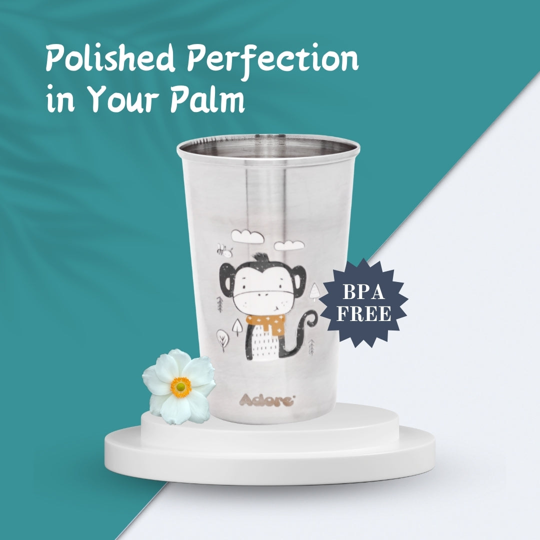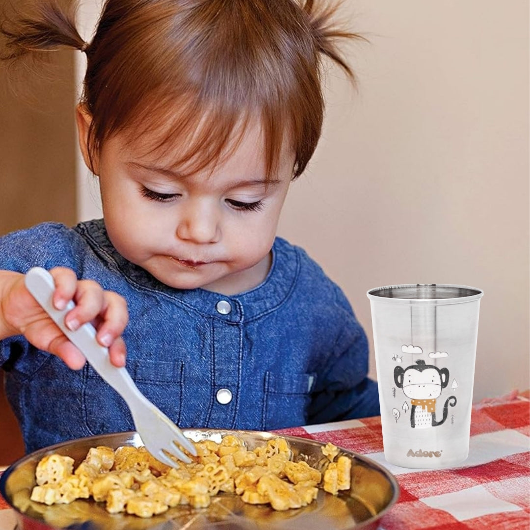 Adore presents Uno! Stainless Steel printed tumbler with curiosity arousing prints for your littleones.This tumbler is a perfect for drinking liquids like water, milk,juice & other beverages. The wide mouth design allows you toeasily clean them efficiently to maintain hygiene. Made from highlydurable stainless steel material.