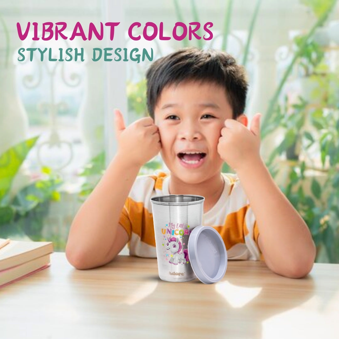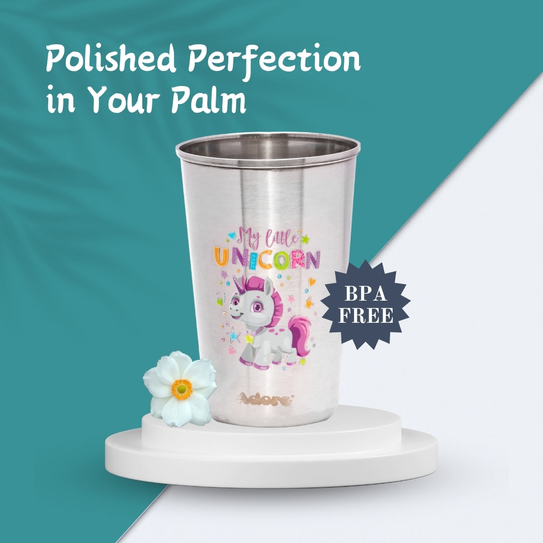 Adore presents Uno! Stainless Steel printed tumbler with curiosity arousing prints for your littleones.This tumbler is a perfect for drinking liquids like water, milk,juice & other beverages. The wide mouth design allows you toeasily clean them efficiently to maintain hygiene. Made from highlydurable stainless steel material.