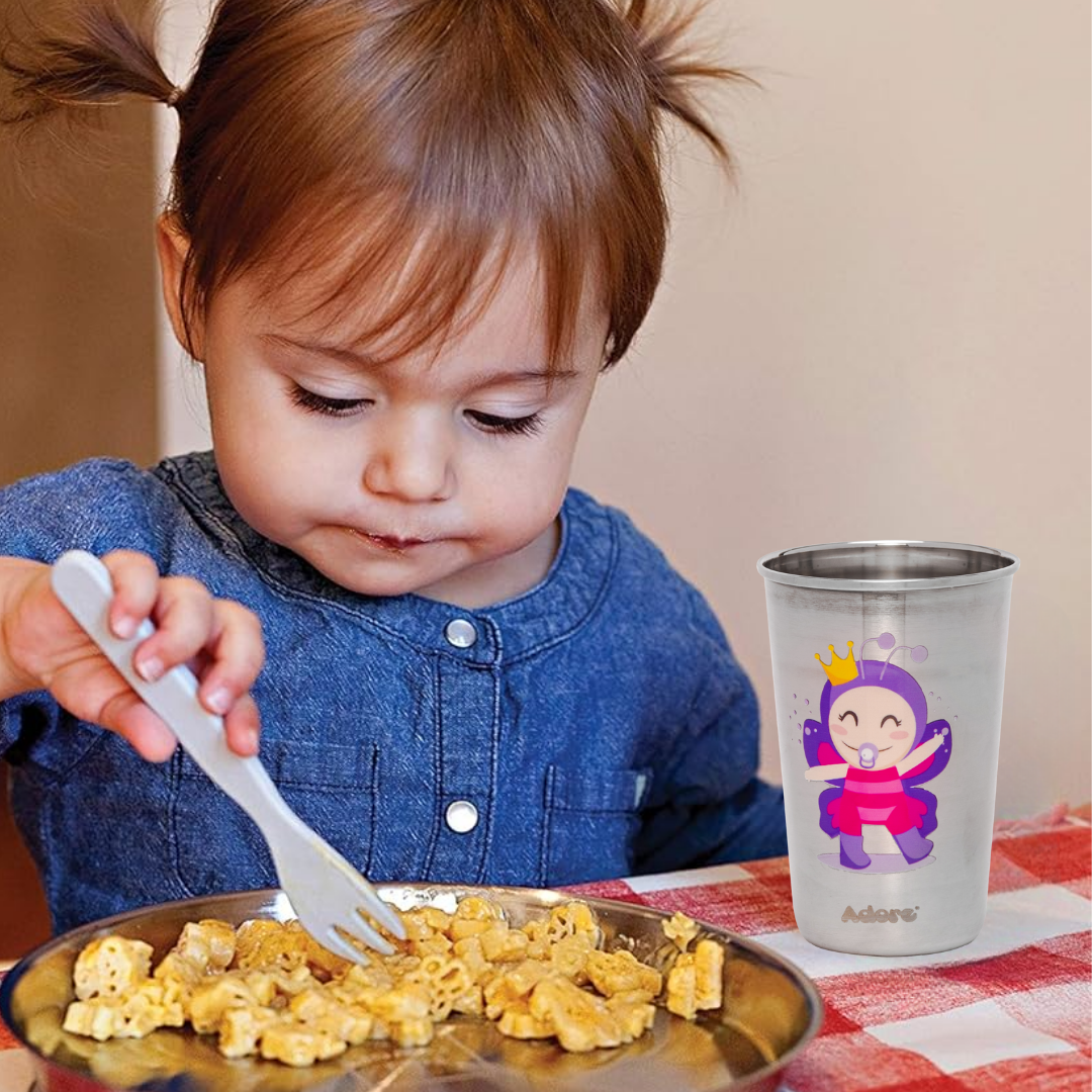 Adore presents Uno! Stainless Steel printed tumbler with curiosity arousing prints for your littleones.This tumbler is a perfect for drinking liquids like water, milk,juice & other beverages. The wide mouth design allows you toeasily clean them efficiently to maintain hygiene. Made from highlydurable stainless steel material.
