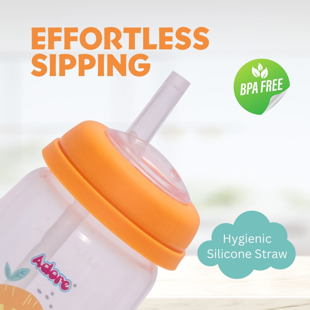 Adore Zeta Wideneck Straw Sipper- Spill Proof- 250ml - Orange