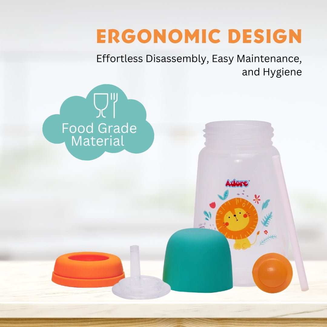 Adore Zeta Soft Straw sipper has been crafted to the highest safety standards. This is BPA Free, Non-Toxic, Spill Proof, Dishwasher Safe, and Sterilizer Friendly. This Soft Silicon Straw helps your child transition from a Spout sipper bottle. Ideal for children from 9 months onwards.