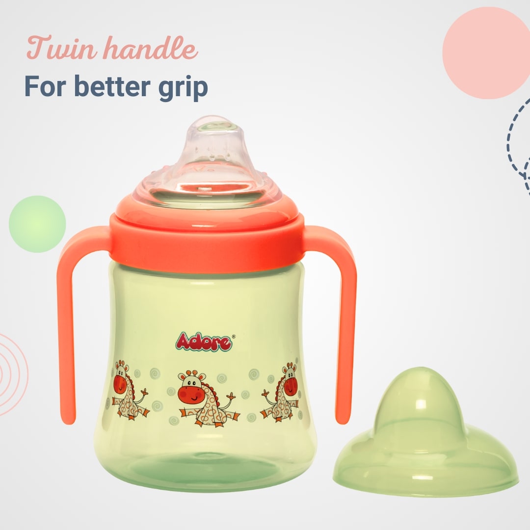 Adore Zippy! The Amazing Soft Silicone Spout Sipper with Twin Handle & Dust Free Hood- 270ml - Green