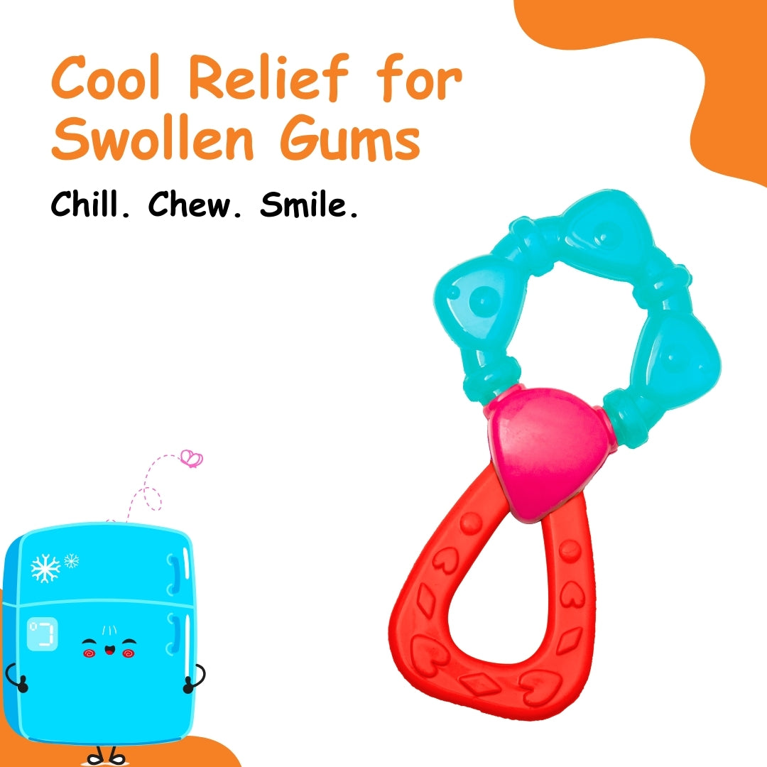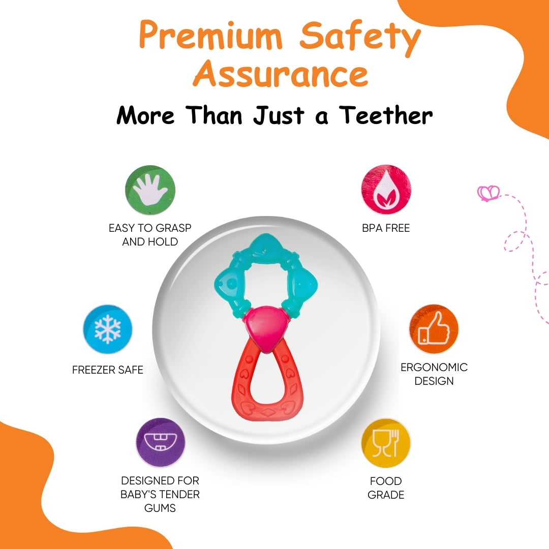 Adore® Luscious Water filled teethers are manufactured from food grade Ethyl Vinyl Acetate (Eva) which is safe and good for baby teething phase. These teethers are filled with highly purified RO distilled water which is baby safe. These Teethers are manufactured using world class, state of the art machinery. Designed to make sure they are easily handled by the babies and hold, gum, and chew and the textured surface massages sensitive areas. Provides extra relief for Soothing, swollen and sensitive gums.