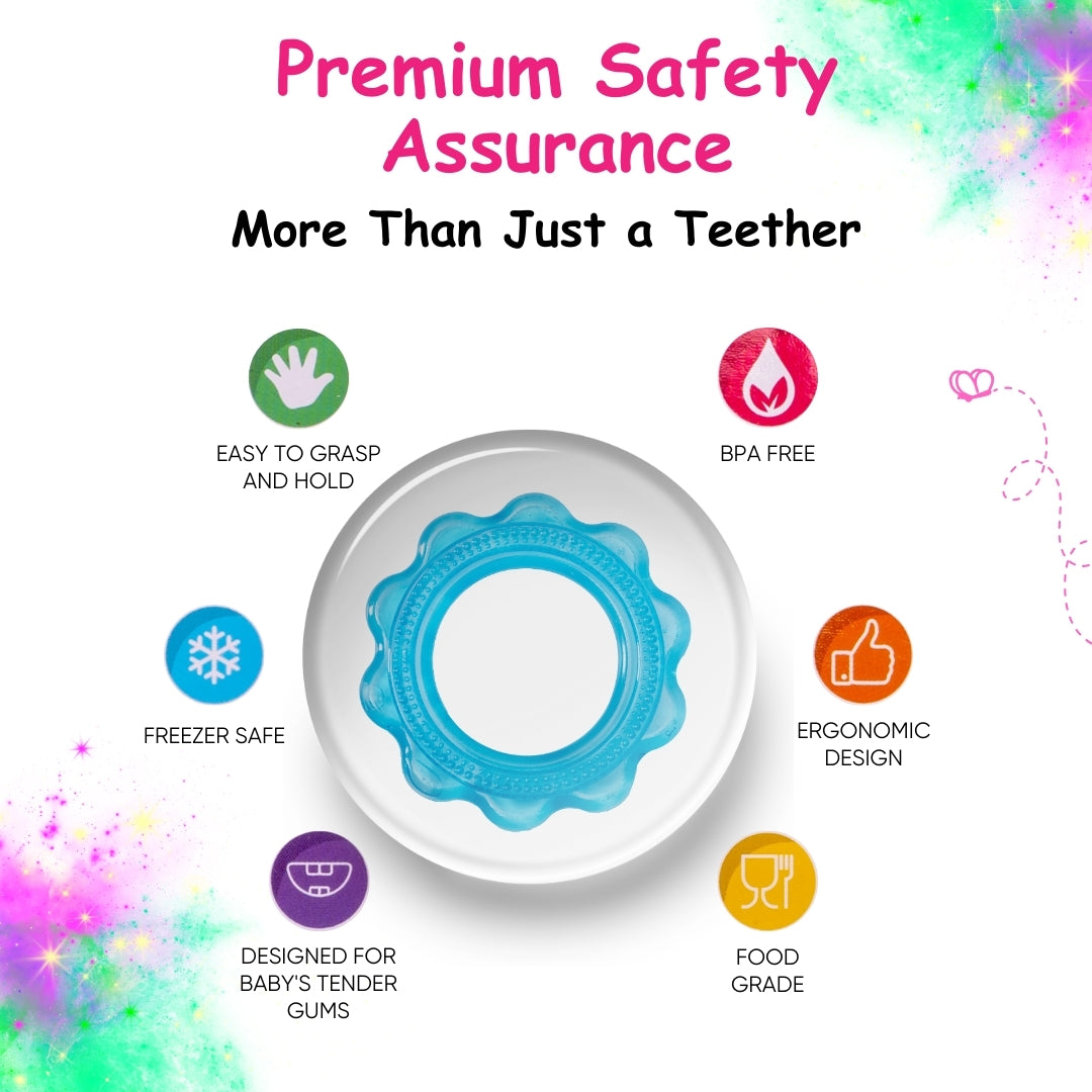 Adore® Luscious Water filled teethers are manufactured from food grade Ethyl Vinyl Acetate (Eva) which is safe and good for baby teething phase. These teethers are filled with highly purified RO distilled water which is baby safe. These Teethers are manufactured using world class, state of the art machinery. Designed to make sure they are easily handled by the babies and hold, gum, and chew and the textured surface massages sensitive areas. Provides extra relief for Soothing, swollen and sensitive gums.