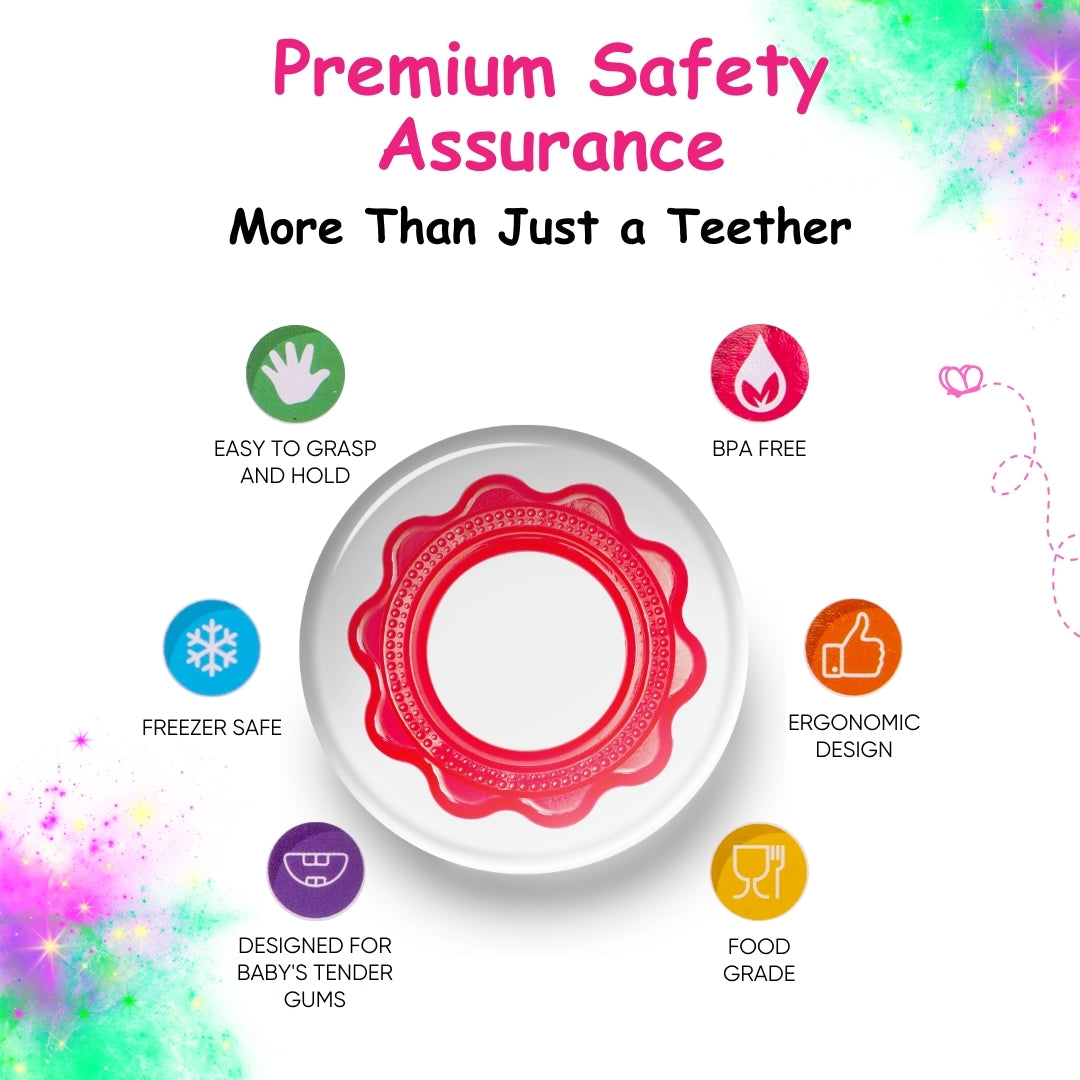 Adore® Luscious Water filled teethers are manufactured from food grade Ethyl Vinyl Acetate (Eva) which is safe and good for baby teething phase. These teethers are filled with highly purified RO distilled water which is baby safe. These Teethers are manufactured using world class, state of the art machinery. Designed to make sure they are easily handled by the babies and hold, gum, and chew and the textured surface massages sensitive areas. Provides extra relief for Soothing, swollen and sensitive gums.