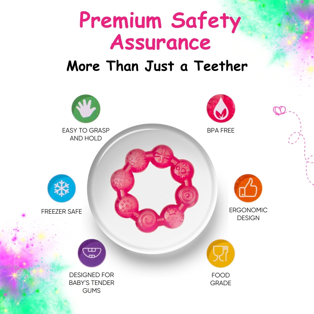 Adore® Luscious Water filled teethers are manufactured from food grade Ethyl Vinyl Acetate (Eva) which is safe and good for baby teething phase. These teethers are filled with highly purified RO distilled water which is baby safe. These Teethers are manufactured using world class, state of the art machinery. Designed to make sure they are easily handled by the babies and hold, gum, and chew and the textured surface massages sensitive areas. Provides extra relief for Soothing, swollen and sensitive gums
