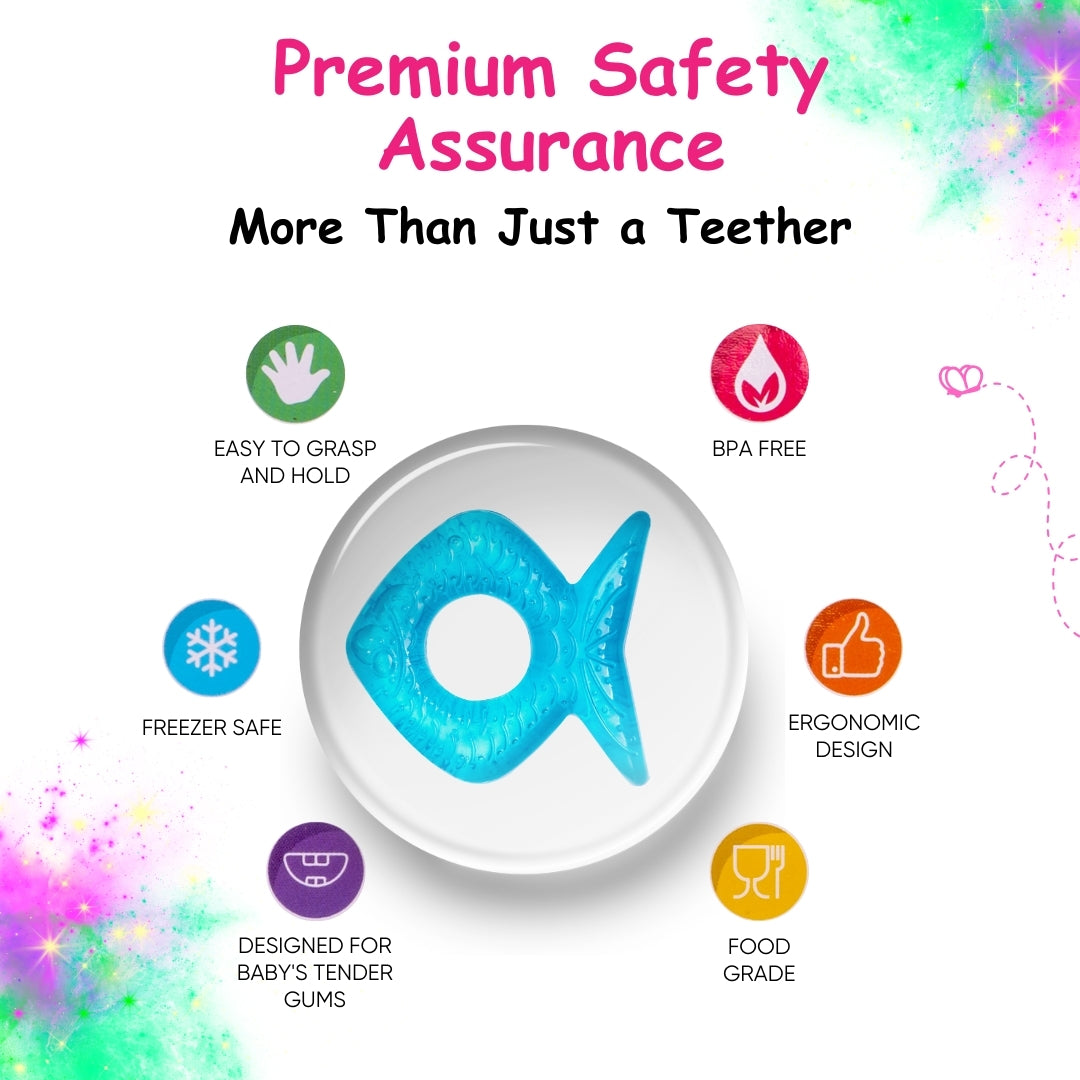 Adore® Luscious Water filled teethers are manufactured from food grade Ethyl Vinyl Acetate (Eva) which is safe and good for baby teething phase. These teethers are filled with highly purified RO distilled water which is baby safe. These Teethers are manufactured using world class, state of the art machinery. Designed to make sure they are easily handled by the babies and hold, gum, and chew and the textured surface massages sensitive areas. Provides extra relief for Soothing, swollen and sensitive gums