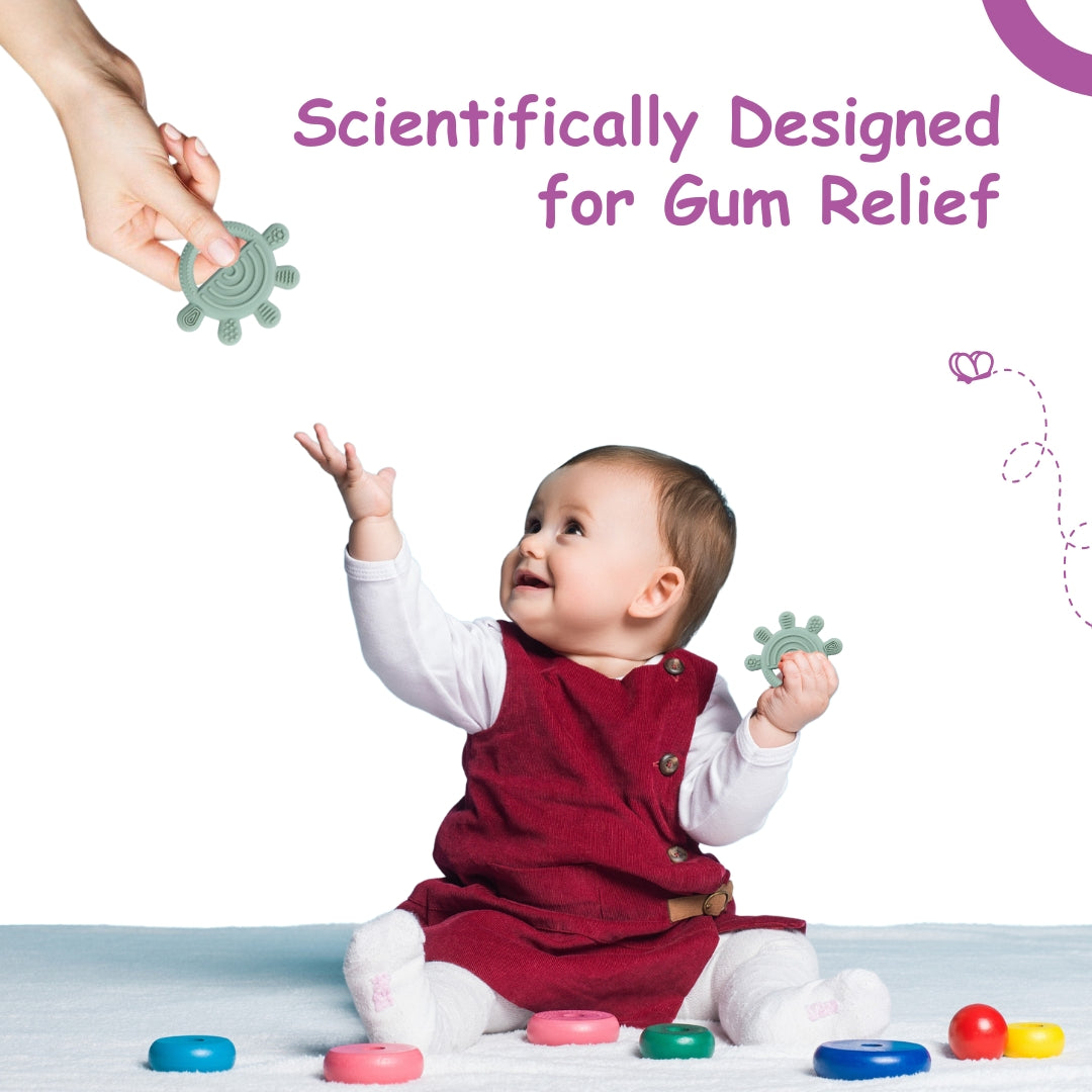 Adore® TUSK- The Silicon teether are manufactured from food grade silicon, that is safe and good for baby teething phase. These Teethers are manufactured using world class, state of the art machinery. Designed to make sure they are easily handled by the babies and hold, gum, and chew and the textured surface massages sensitive areas. Provides extra relief for Soothing, swollen and sensitive gums.