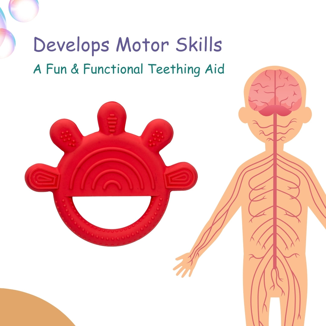 Adore® TUSK- The Silicon teether is manufactured from food-grade silicon, which is safe and good for the baby teething phase. These Teethersare manufactured using world-class, state-of-the-art machinery. Designed tomake sure they are easily handled by the babies and hold, gum, and chew, and thetextured surface massages sensitive areas. Provides extra relief for Soothing,swollen and sensitive gums.