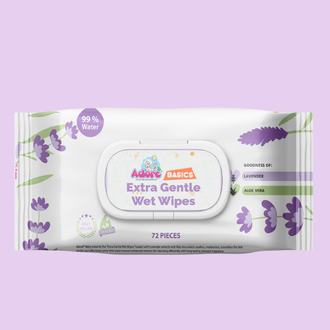 Give your baby the gentle care they deserve with Adore® Baby Lavender Wet Wipesa perfect blend of purity, nourishment, and softness. Infused with the calming essence of Lavender and enriched with Aloe Vera, these wipes are specially designed for delicate baby skin.