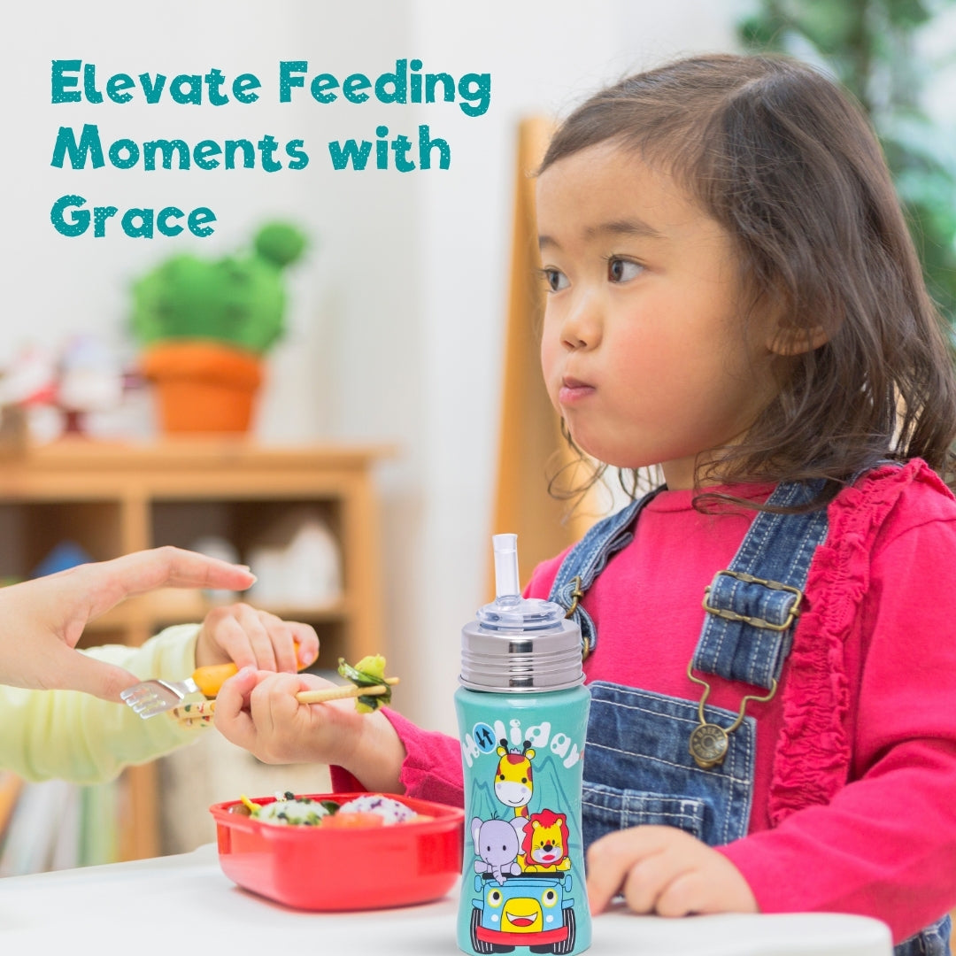 Adore EPSILON 2 Stage Premium Printed Stainless Steel Spout and Straw Sipper 250ml- Holiday Safari