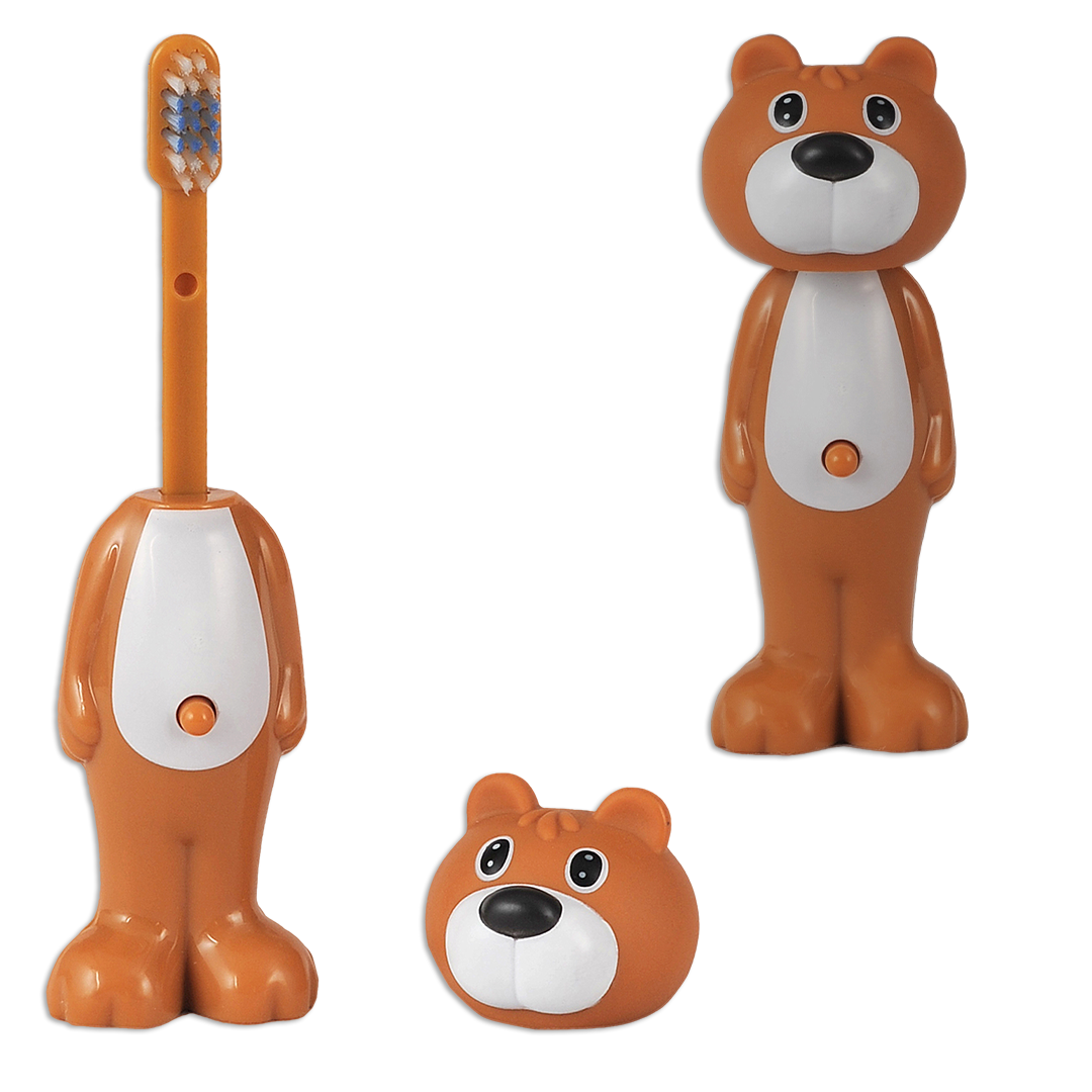 Adore Kids Pop Up Toothbrush with Safety Head Attractive Character - Brown Bear