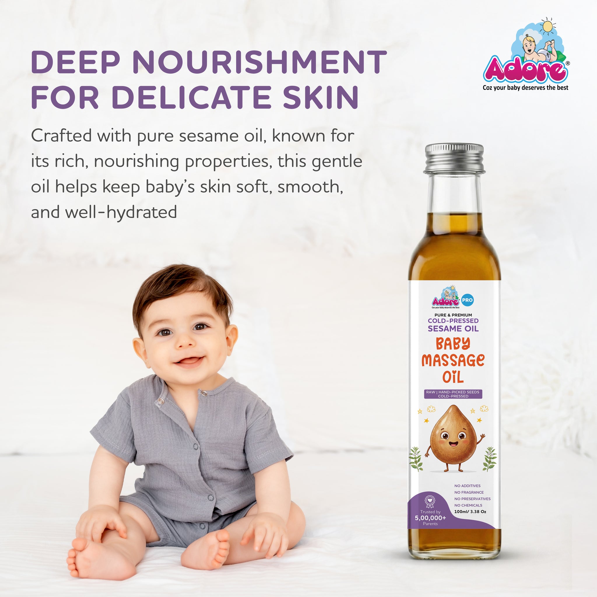 Adore Pure & Premium Cold Pressed Sesame Oil is extracted using traditional cold-press methods to preserve its natural nutrients and aroma. Known for its antioxidant-rich and deeply nourishing properties, sesame oil has been widely used in Ayurvedic massage for promoting healthy skin.