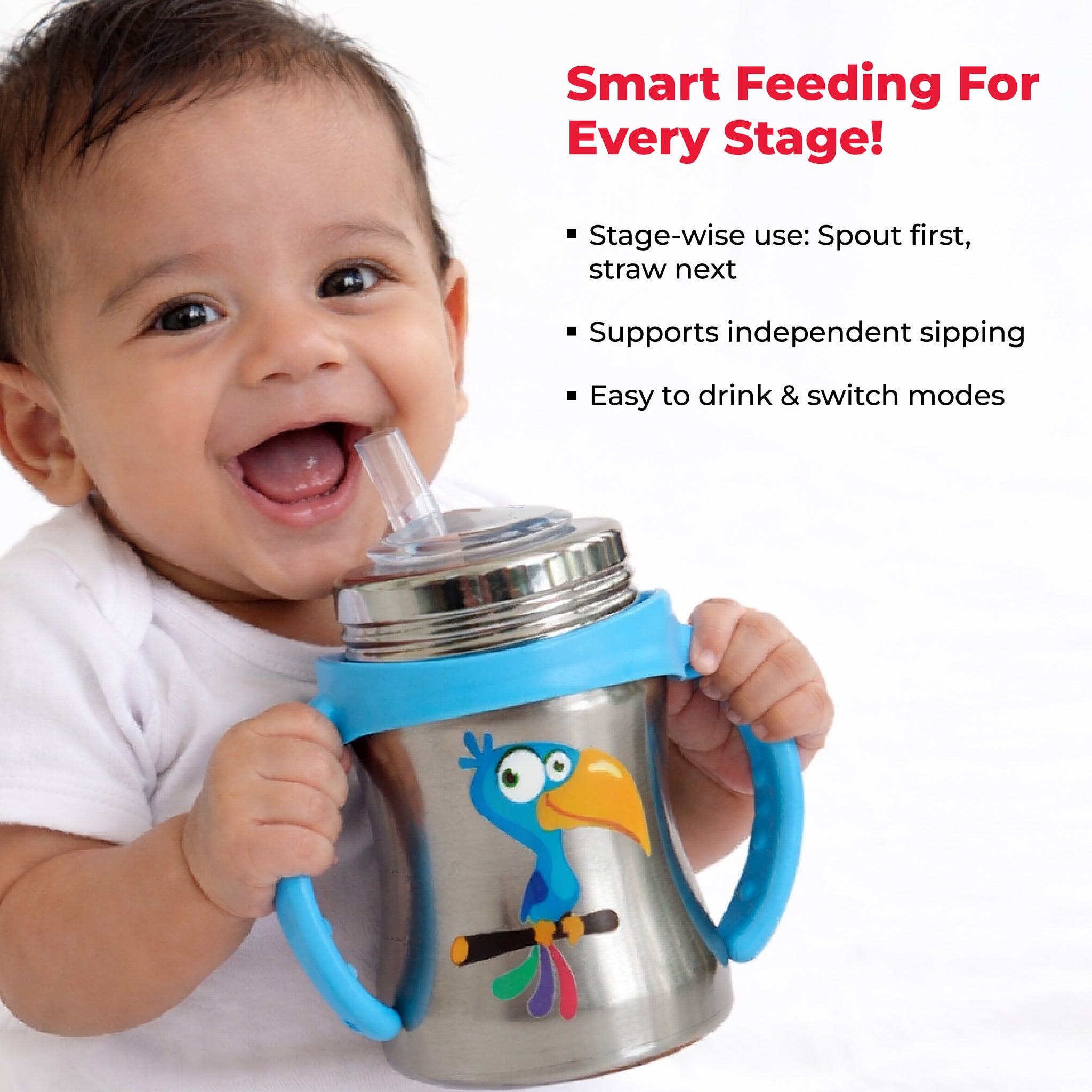 Adore Twilight Jr 2 in 1 Stainless Steel Sipper with Twin Handle 150ml- Blue