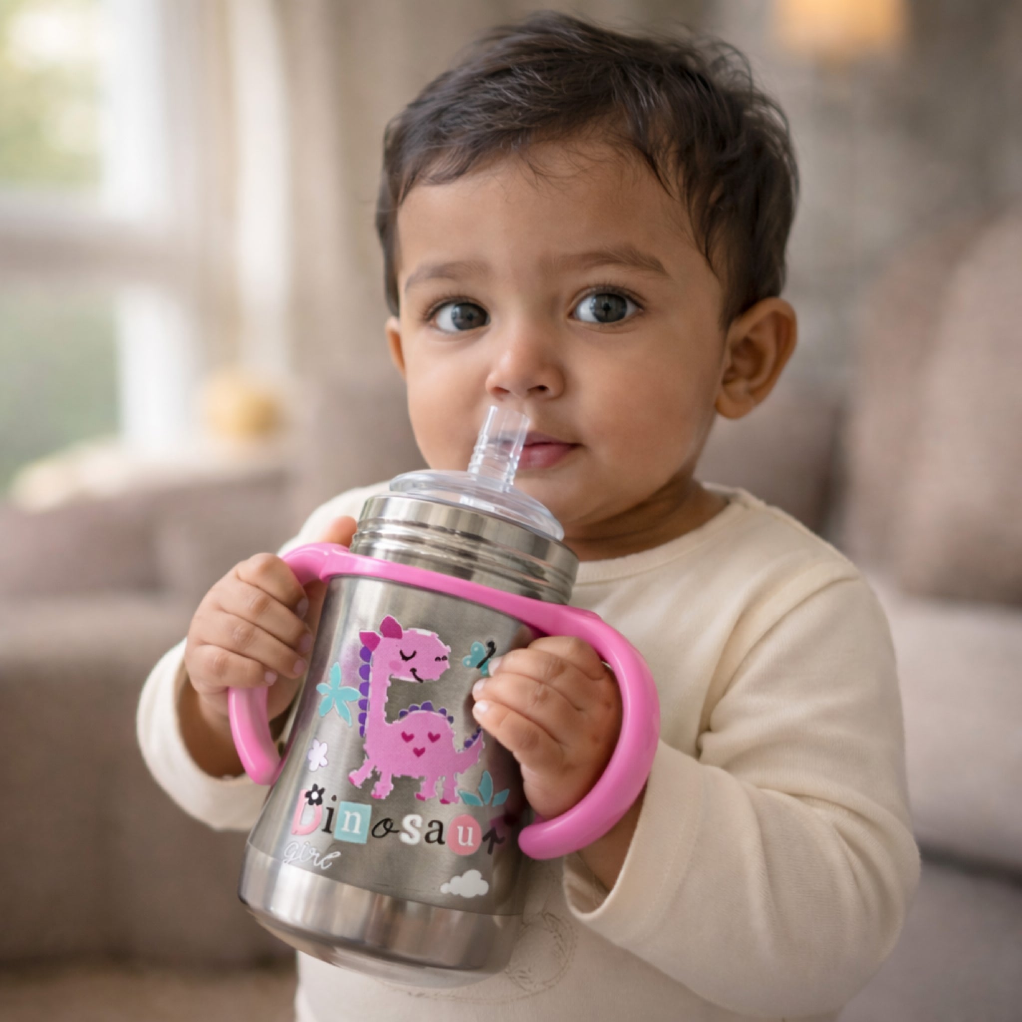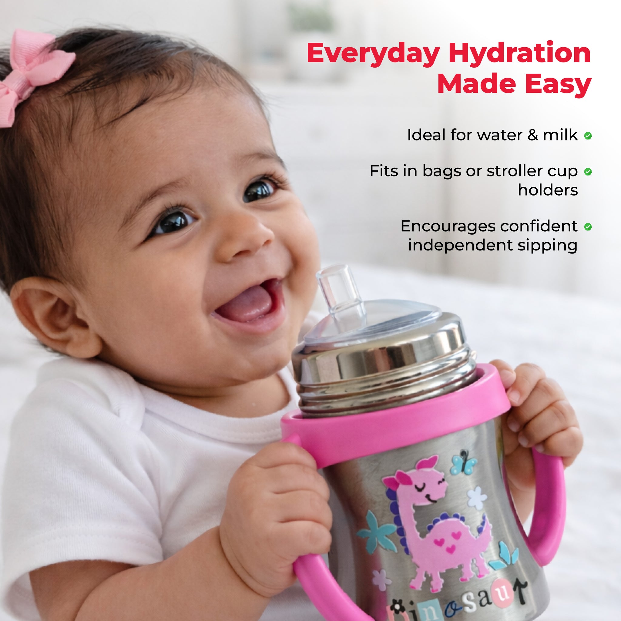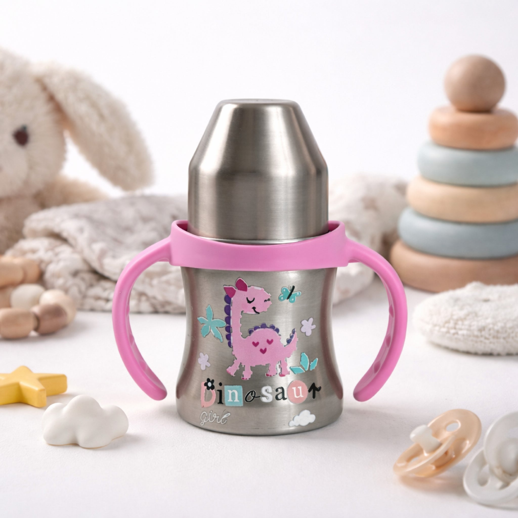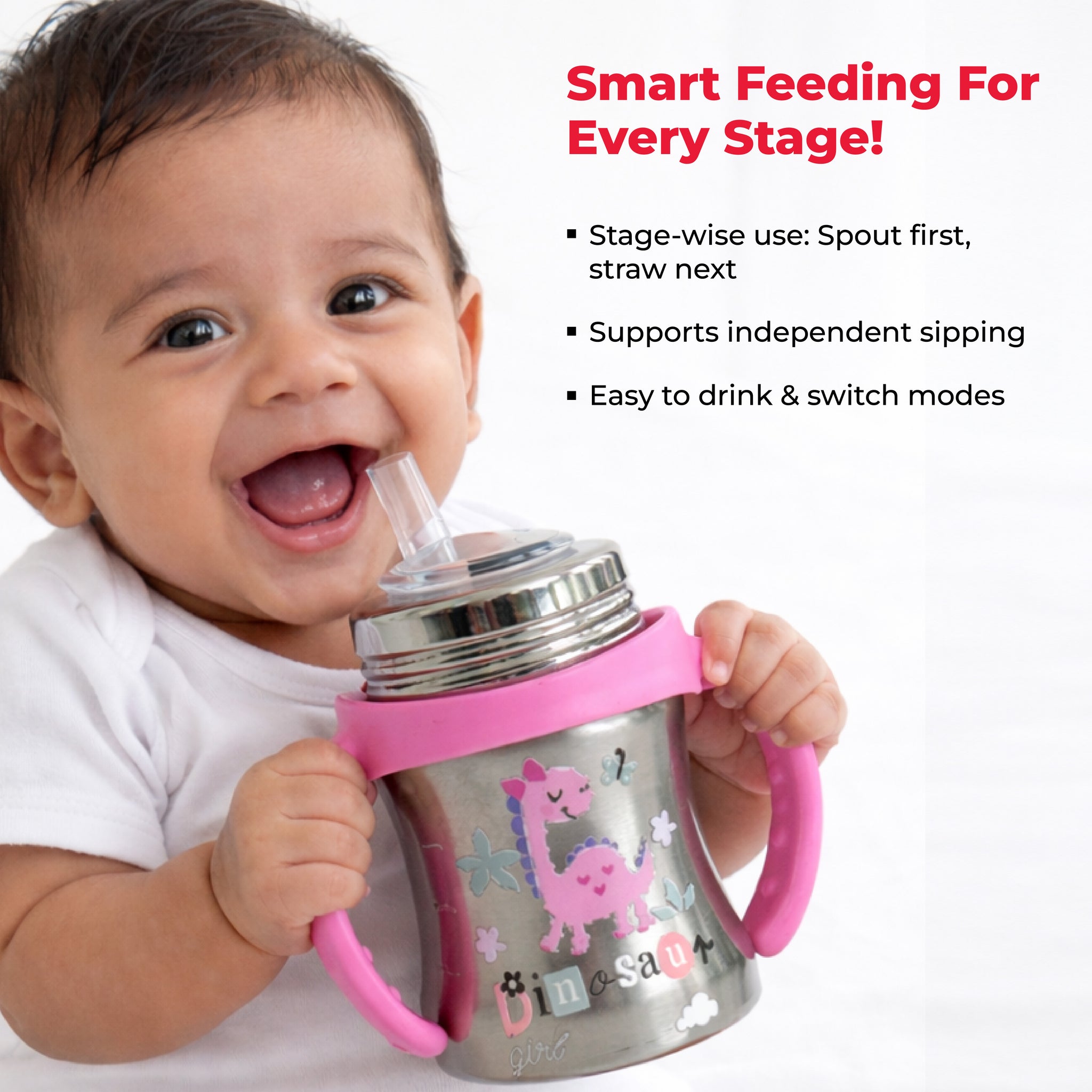 Adore Twilight Jr. 2 Stage Stainless Steel Straw Sipper with Twin Handle 150ml- Pink