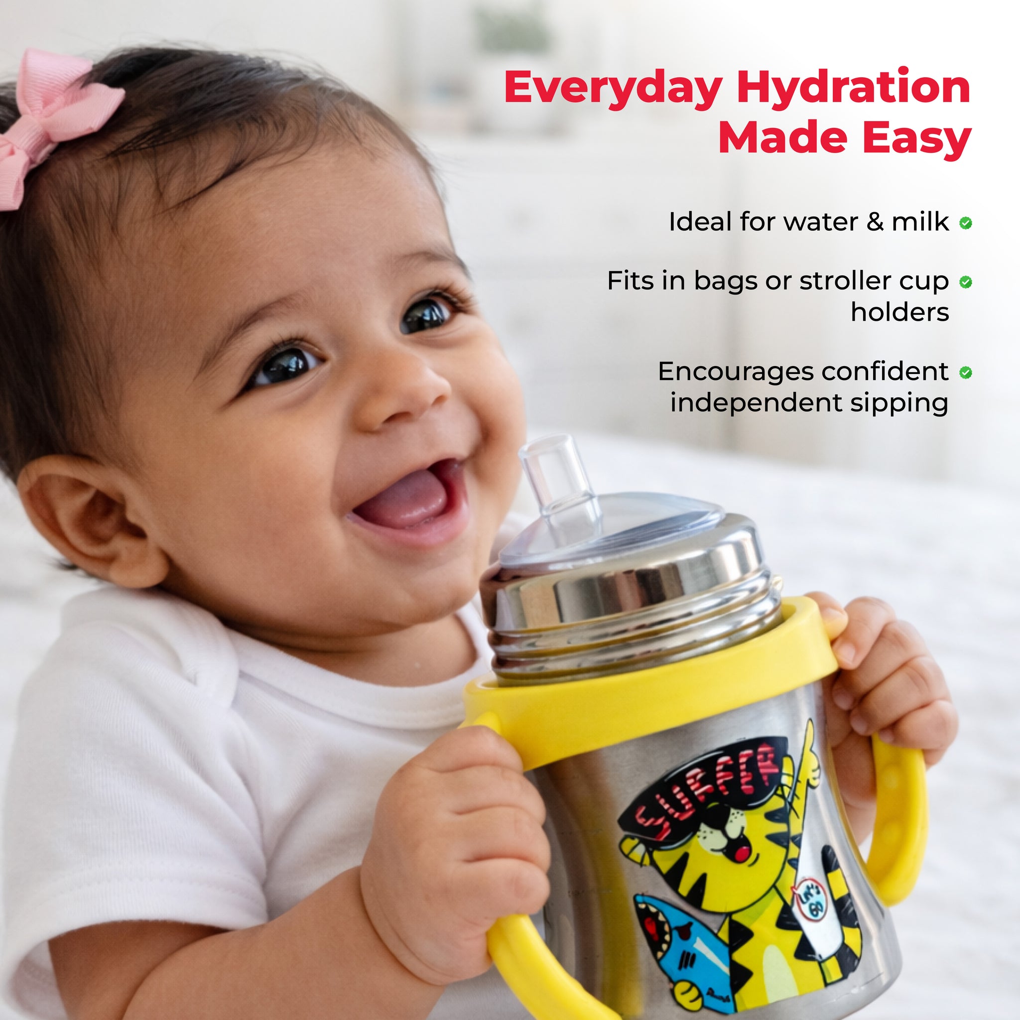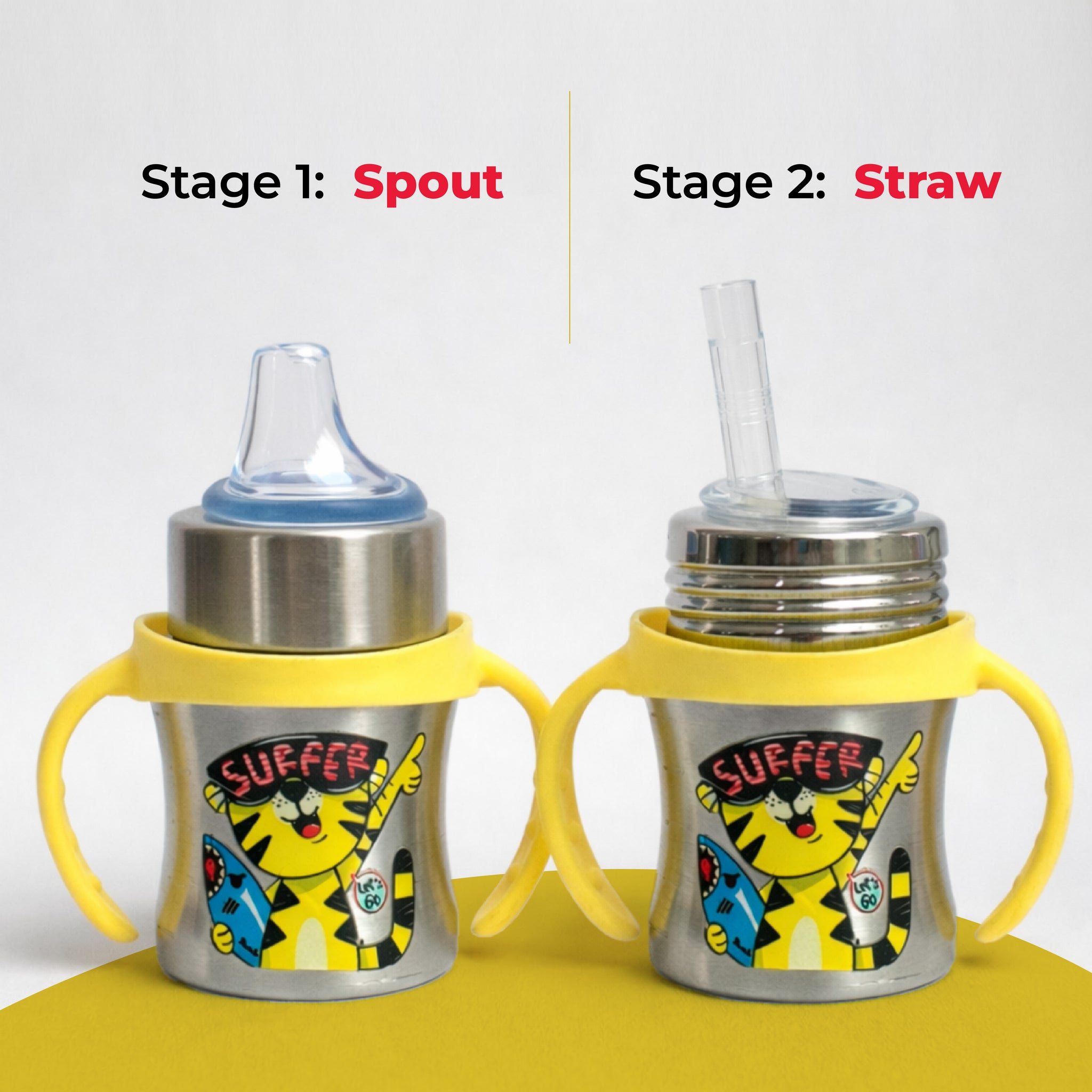 Adore Twilight Jr. 2 Stage Stainless Steel Straw Sipper with Twin Handle 150ml- Yellow