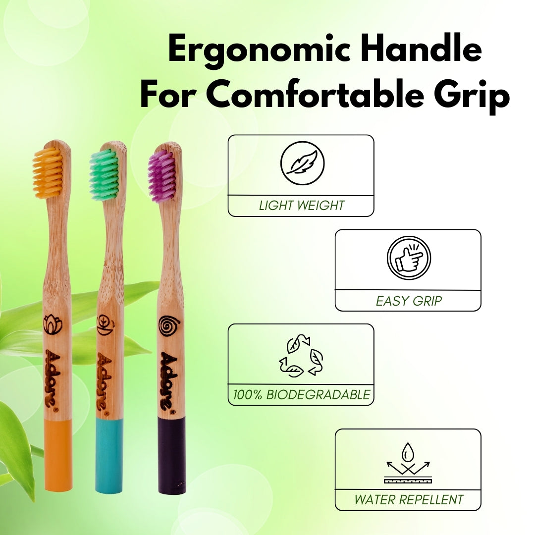 Adore Tridosa Kids Bamboo Wooden Toothbrush with Super Soft Bristles- Pack of 3